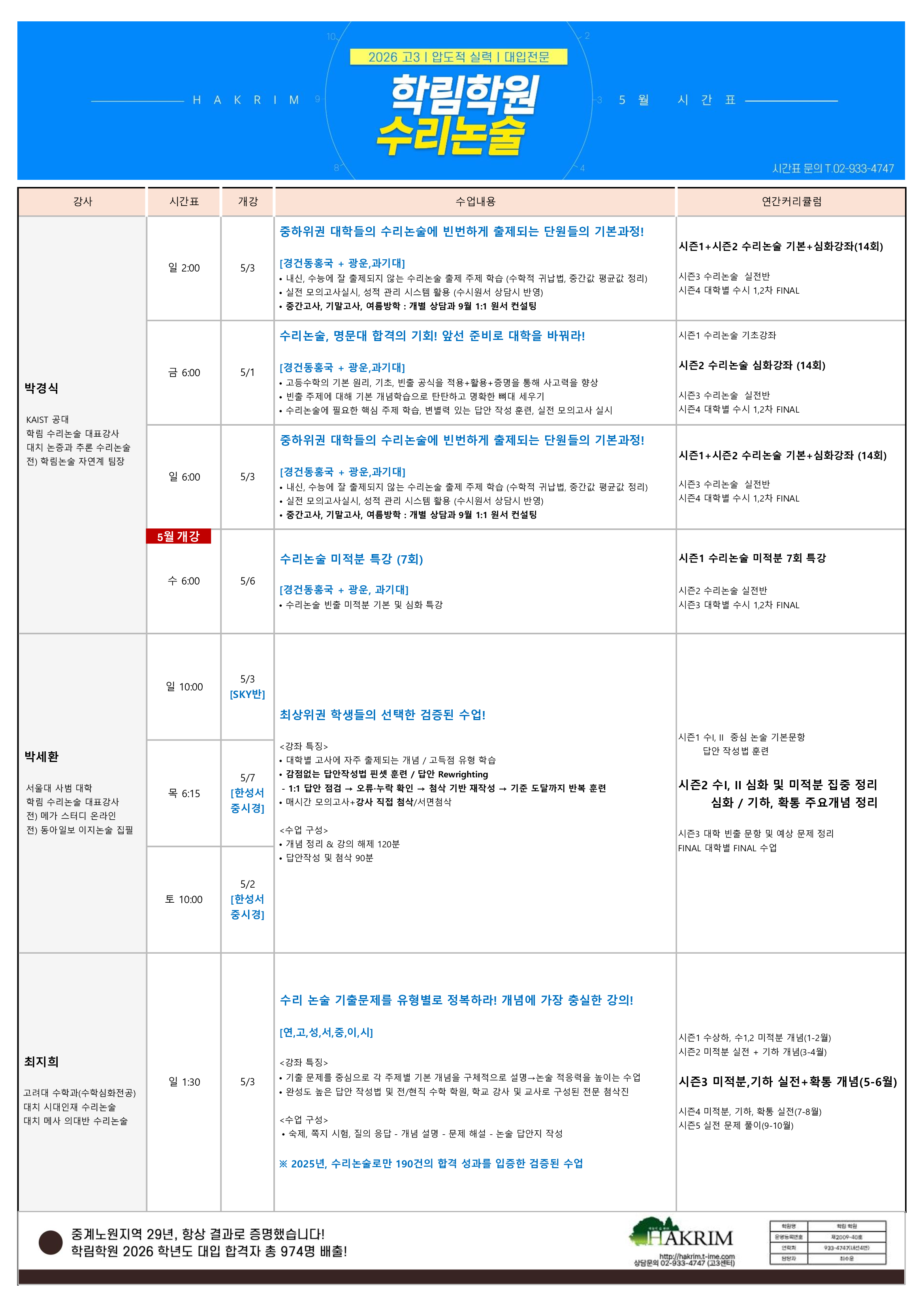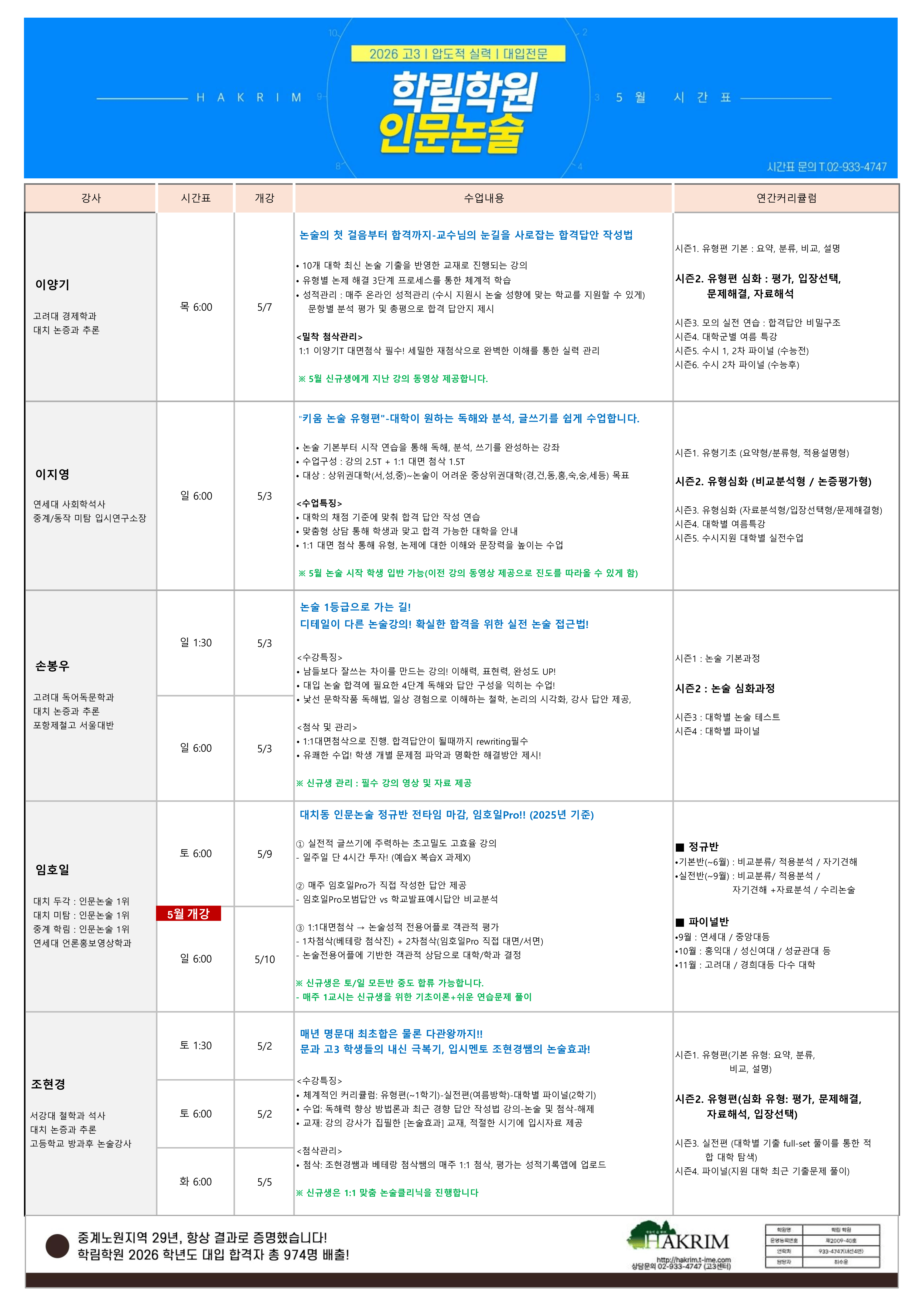 2026년도 5월 논술시간표
