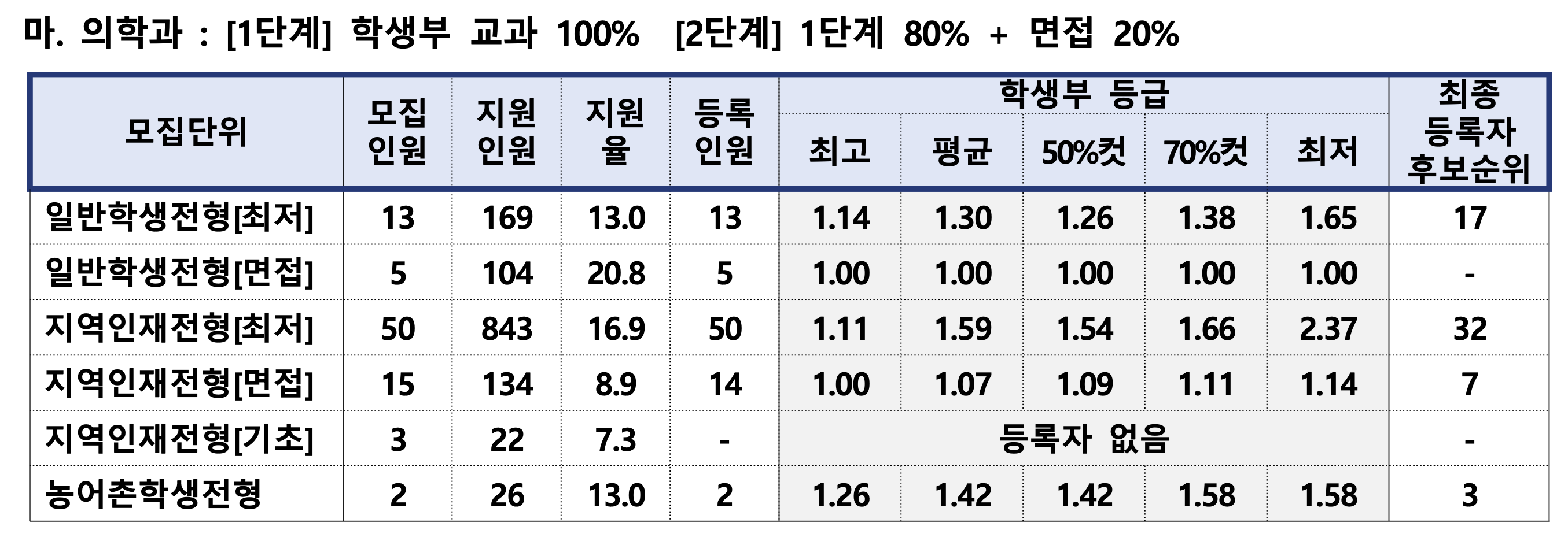 오늘은 일반학생전형(교과전형, 1단계 교과 100% --> 2단계 면접 20%)의 결과를 분석해보겠습니다.